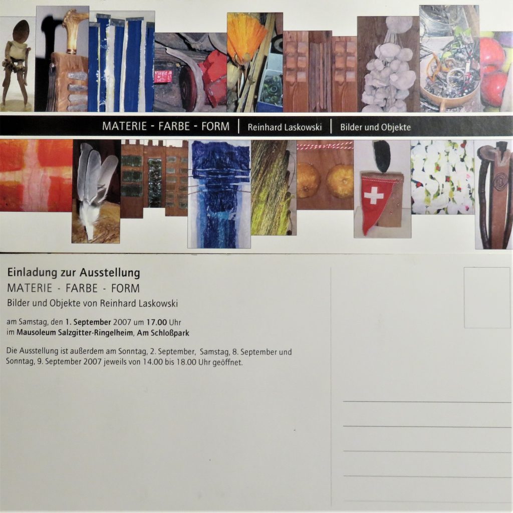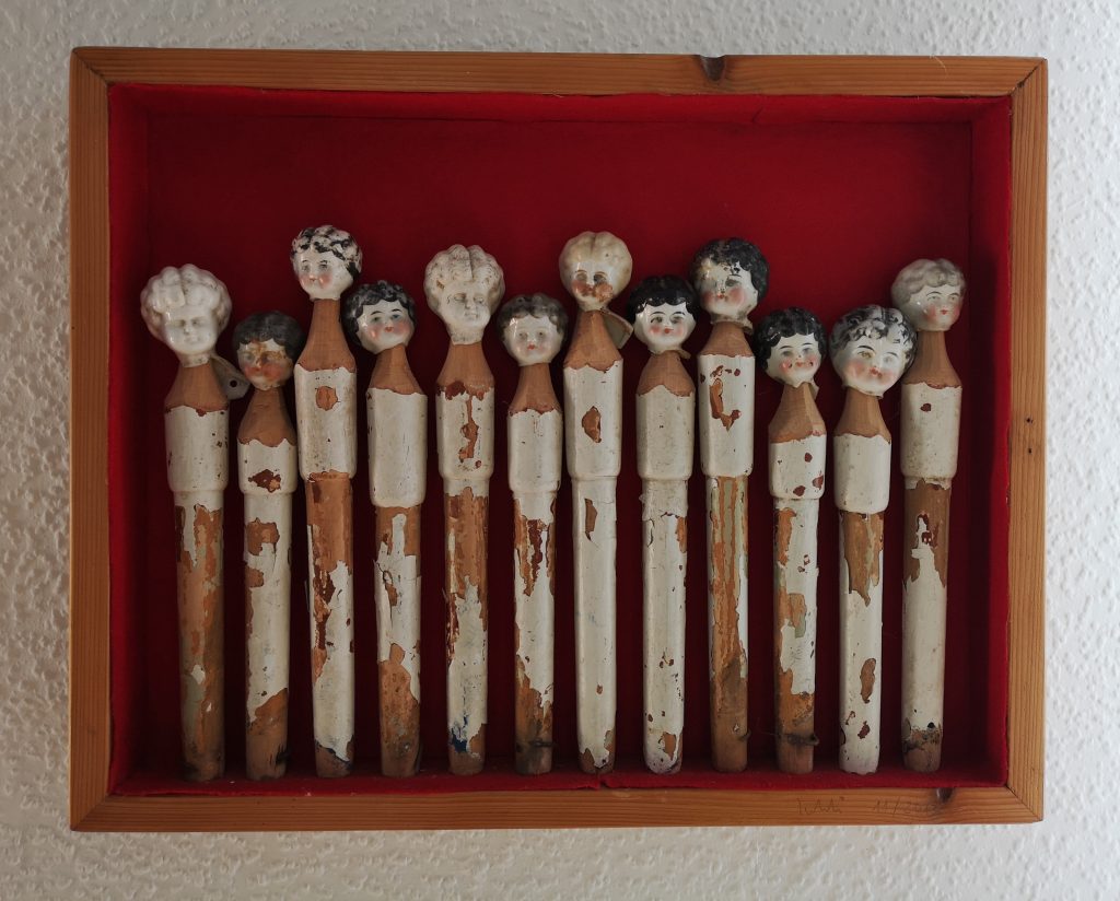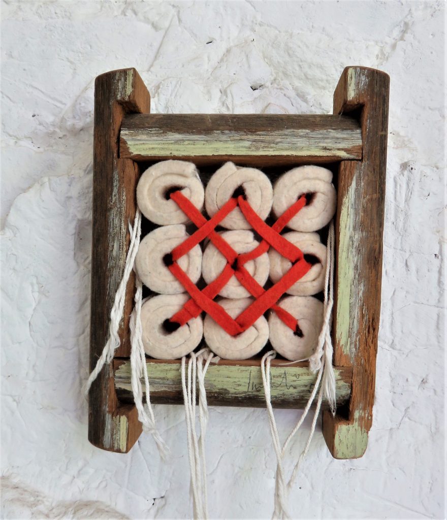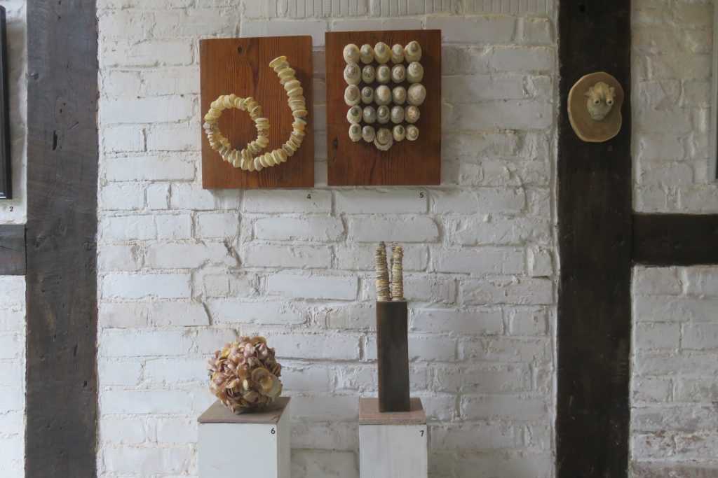 Ausstellungsarchiv „Handwerker“ 2022 „Königspaar 2“ 2022 „Schaukasten 2“ 2022 „Kois 1“ Öl auf Leinwand „Bleipuppe“ „Boot“ – Eiche auf Rundstahl „Helm“ – Kupferplatten, Aluschrauben auf Eichenplatte „Repliken“ – Pfeilspitzen aus Feuerstein an Kupferdraht „Zahnturm“ – Zähne, Klebstoff geknüpfte Seide 2022 ca. 26×26 cm rhdr „Atlantik“ – Muscheln auf Aluplatte „Rollwerk“ – Papier, Tinte auf Eichenbohle „Rotkreuz“ – Filz, Eiche „Glasbruch“ – Glas, Eichenbalken „Muschelrund“ „Schalenwerk“ – Passionsfrucht, Garn, Lack auf Stahlplatte „Waldgang“ – Tierschädel, Lack, Filz im Holzkasten „Puppenreihe“ 2015 Porzellan- Puppenköpfe, Treppendoggen, Filz im Holzkasten „Planum 1-5“ Öl auf Leinwand „Schnittwerk“ – Leinwandstreifen, Lack „Grönland I-III“ – Öl auf Papier „grünes Feld“ – Öl auf Stahlplatte „Fenster 1“ – Seidenpapier, Lack auf Altpapier „Sandstrahl“ – Sandstrahlplatten auf Eichenbohle „3 x 9“ – Sinterpülatten, Farbpüigmente auf Eichenbohle „Moosfeld“ – Kunstmoos auf Eichenbohle „Glasbruch“ „3er Palette“ – Palettenholz, Öl „Donnerkeiligel“ „Küche 2“ – Abwaschschwämme, Filz im Holzkasten „Birkenhaus“ „Torso“ Obstbaum, Stahl, Eiche „Tänzerin“ – Macchiaholz „Engel II“ – Seidenpapier, Lack auf Altpapier „Engel III“ – Seidenpapier, Lack auf Altpapier