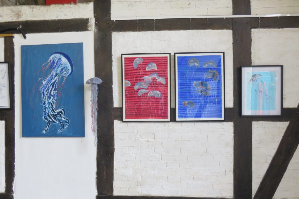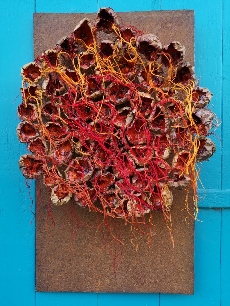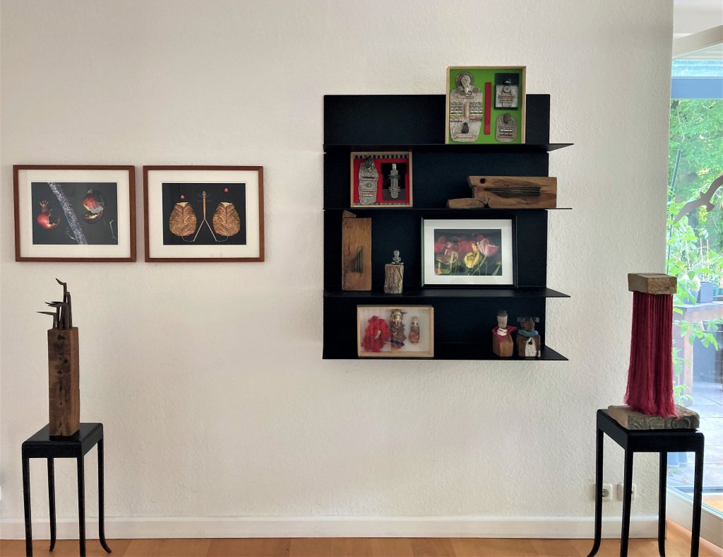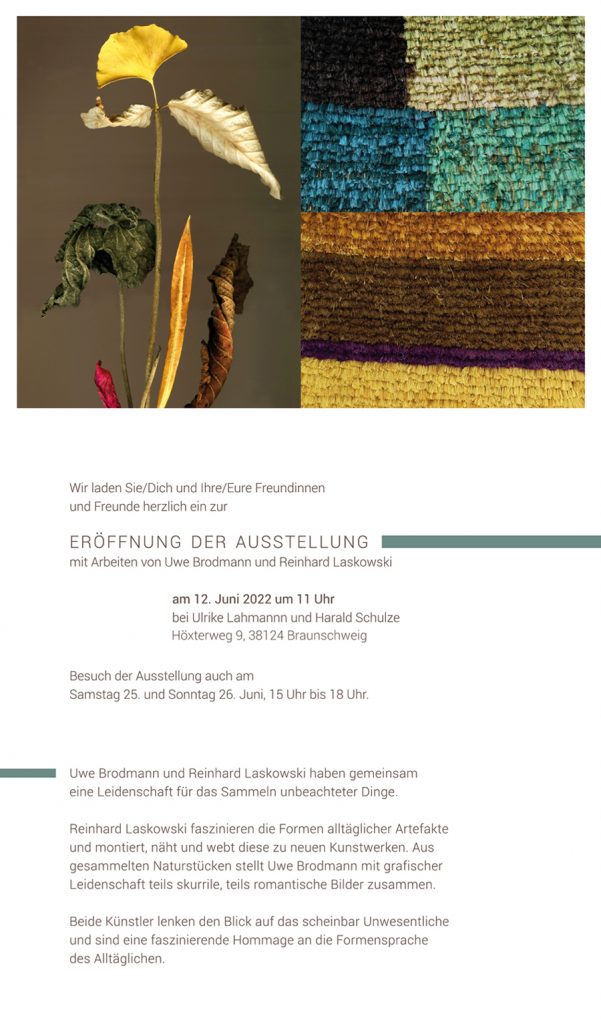 Ausstellungsarchiv „Handwerker“ 2022 „Königspaar 2“ 2022 „Schaukasten 2“ 2022 „Kois 1“ Öl auf Leinwand „Bleipuppe“ „Boot“ – Eiche auf Rundstahl „Helm“ – Kupferplatten, Aluschrauben auf Eichenplatte „Repliken“ – Pfeilspitzen aus Feuerstein an Kupferdraht „Zahnturm“ – Zähne, Klebstoff geknüpfte Seide 2022 ca. 26×26 cm rhdr „Atlantik“ – Muscheln auf Aluplatte „Rollwerk“ – Papier, Tinte auf Eichenbohle „Rotkreuz“ – Filz, Eiche „Glasbruch“ – Glas, Eichenbalken „Muschelrund“ „Schalenwerk“ – Passionsfrucht, Garn, Lack auf Stahlplatte „Waldgang“ – Tierschädel, Lack, Filz im Holzkasten „Puppenreihe“ 2015 Porzellan- Puppenköpfe, Treppendoggen, Filz im Holzkasten „Planum 1-5“ Öl auf Leinwand „Schnittwerk“ – Leinwandstreifen, Lack „Grönland I-III“ – Öl auf Papier „grünes Feld“ – Öl auf Stahlplatte „Fenster 1“ – Seidenpapier, Lack auf Altpapier „Sandstrahl“ – Sandstrahlplatten auf Eichenbohle „3 x 9“ – Sinterpülatten, Farbpüigmente auf Eichenbohle „Moosfeld“ – Kunstmoos auf Eichenbohle „Glasbruch“ „3er Palette“ – Palettenholz, Öl „Donnerkeiligel“ „Küche 2“ – Abwaschschwämme, Filz im Holzkasten „Birkenhaus“ „Torso“ Obstbaum, Stahl, Eiche „Tänzerin“ – Macchiaholz „Engel II“ – Seidenpapier, Lack auf Altpapier „Engel III“ – Seidenpapier, Lack auf Altpapier