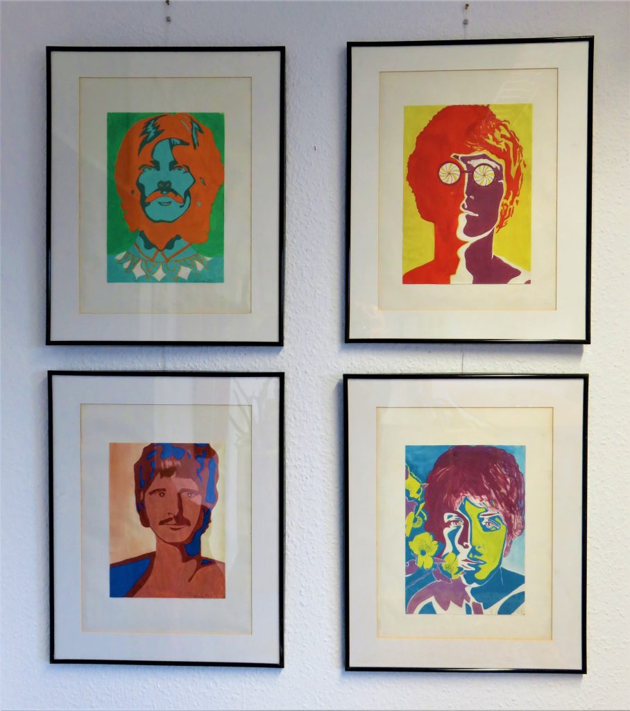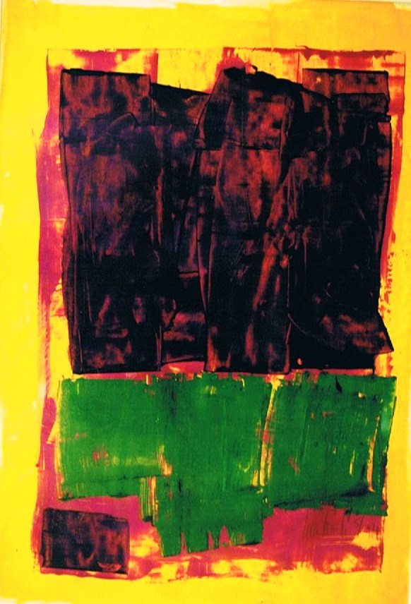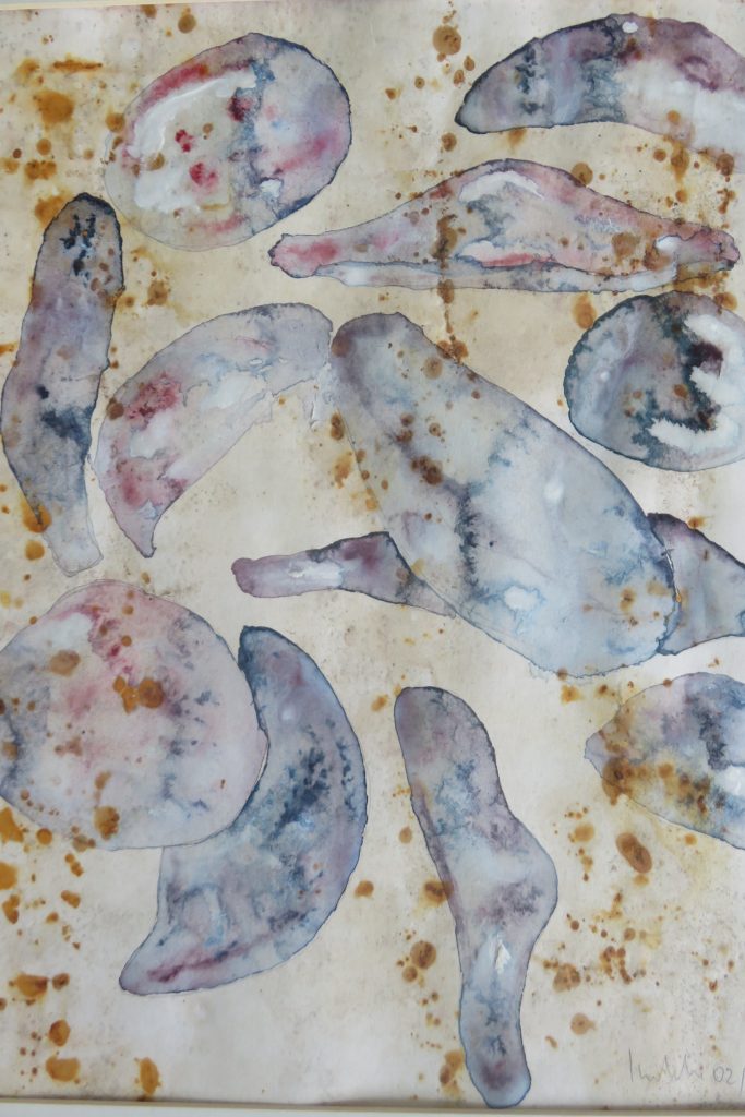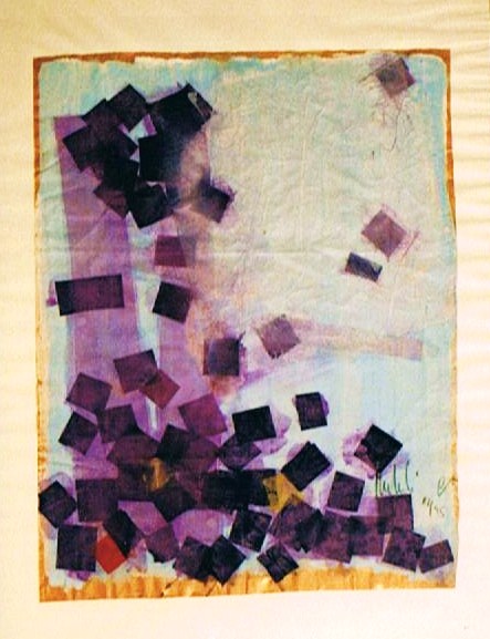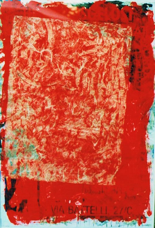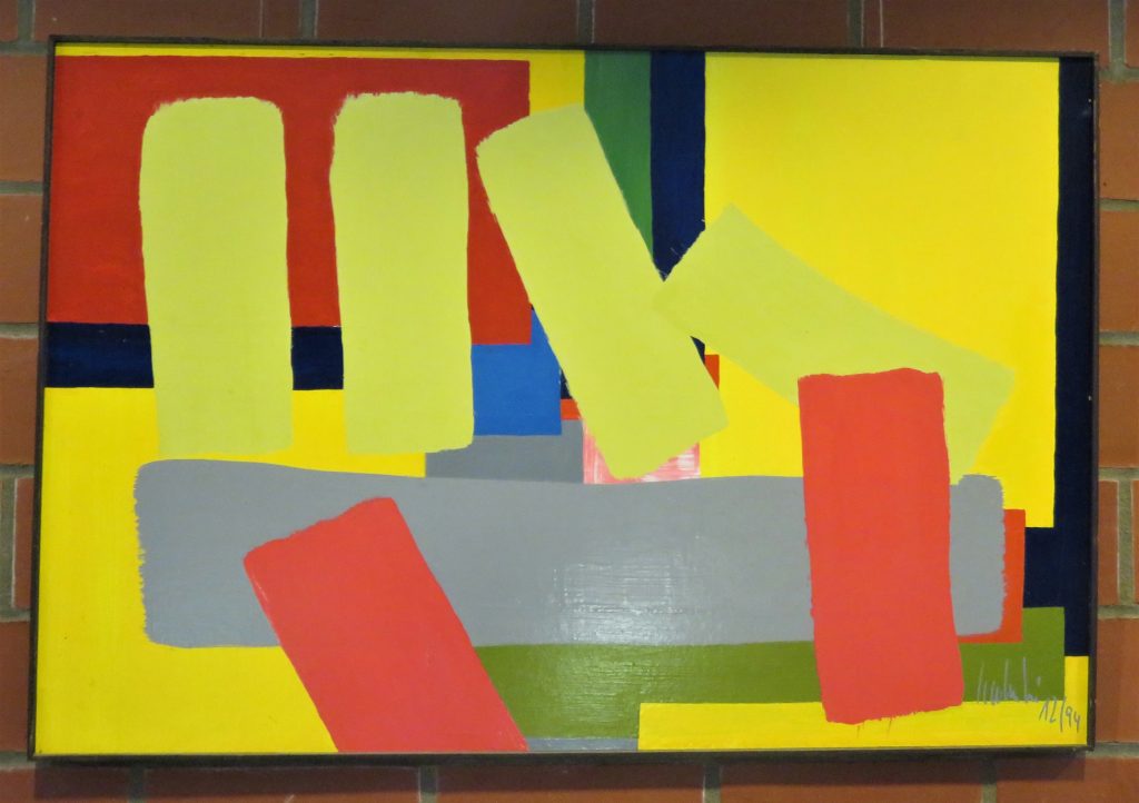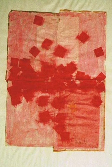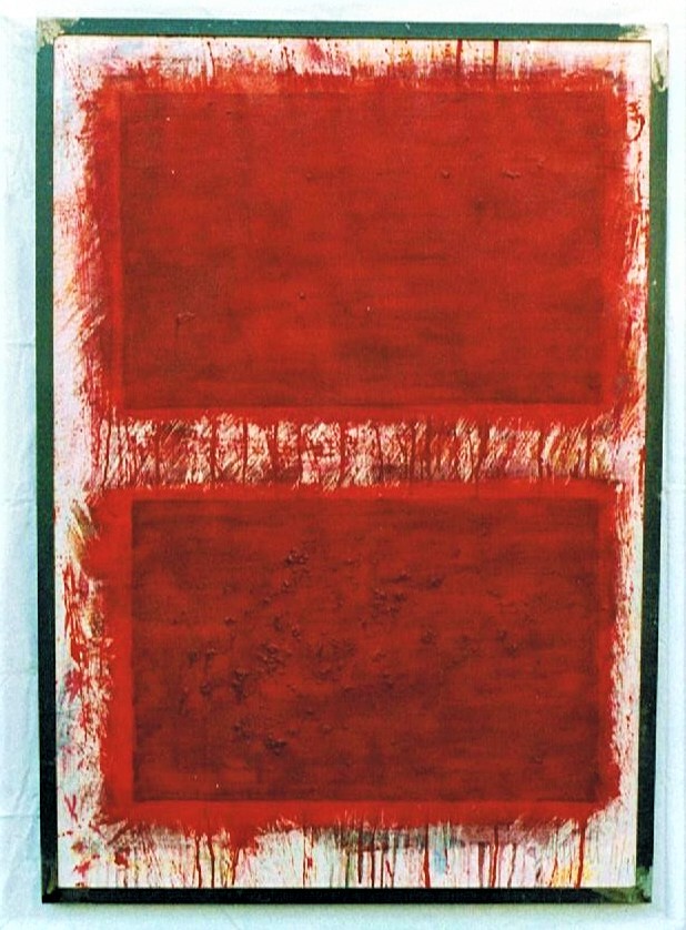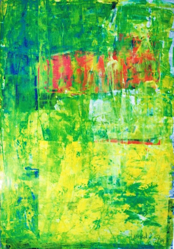 „Gelbfeld“ – Lack auf Papier„Spachtel 3 – Acryl auf Papier„Spachtel 2“ – Acryl auf Papier„Kreise“ – Acryl auf Papier„Via Bartelli“ – Seidenpapier, Acryl auf Altpapier„Spachtel 1“ – Acryl auf Papier„Rotfeld 2“ – Lack auf Papier„lila Würfel“ – Seidenpapier, Lack auf Altpapier„rote Würfel“ – Seidenpaier, Lack auf Altpapier„Beatles“ – Tusche auf Papier„Twiggy“ – Acryl auf Papier„Kettenreaktion“ – Acryl auf Hartfaser„Schwanger“ – Rötel auf Papier„Wirbel“ – Öl auf Papier „Kois 2“ – Öl auf Leinwand