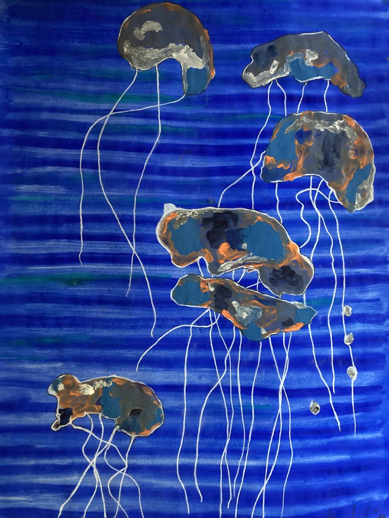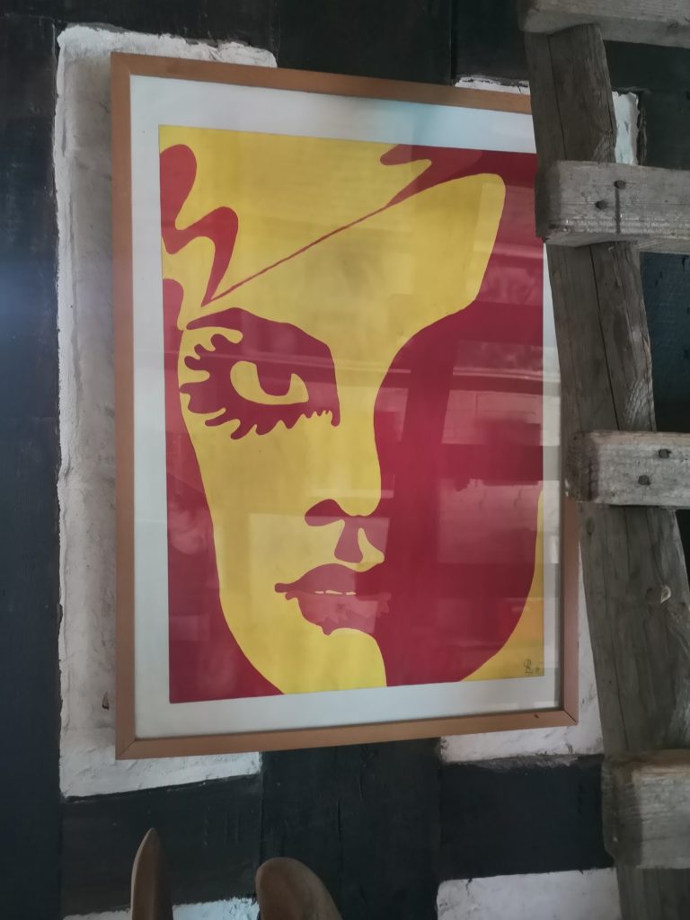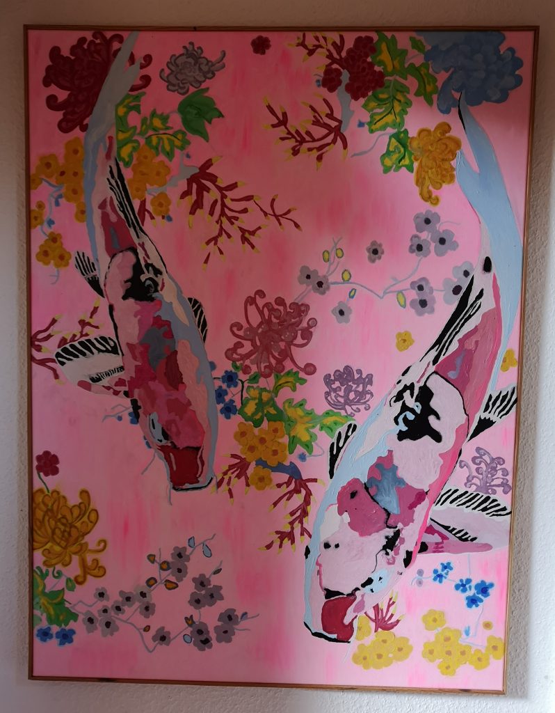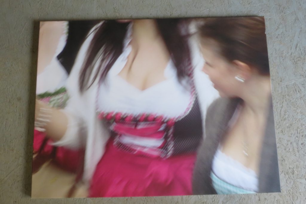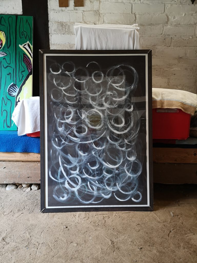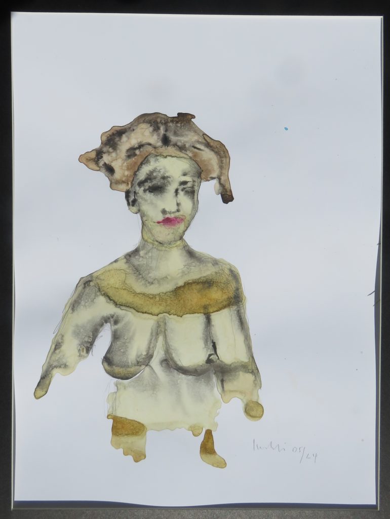 „Gelbfeld“ – Lack auf Papier„Spachtel 3 – Acryl auf Papier„Spachtel 2“ – Acryl auf Papier„Kreise“ – Acryl auf Papier„Via Bartelli“ – Seidenpapier, Acryl auf Altpapier„Spachtel 1“ – Acryl auf Papier„Rotfeld 2“ – Lack auf Papier„lila Würfel“ – Seidenpapier, Lack auf Altpapier„rote Würfel“ – Seidenpaier, Lack auf Altpapier„Beatles“ – Tusche auf Papier„Twiggy“ – Acryl auf Papier„Kettenreaktion“ – Acryl auf Hartfaser„Schwanger“ – Rötel auf Papier„Wirbel“ – Öl auf Papier „Kois 2“ – Öl auf Leinwand