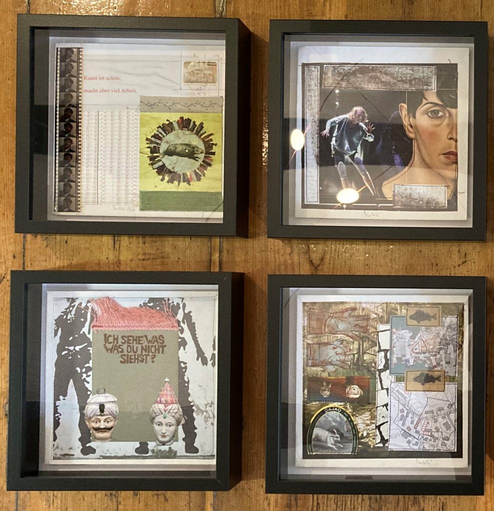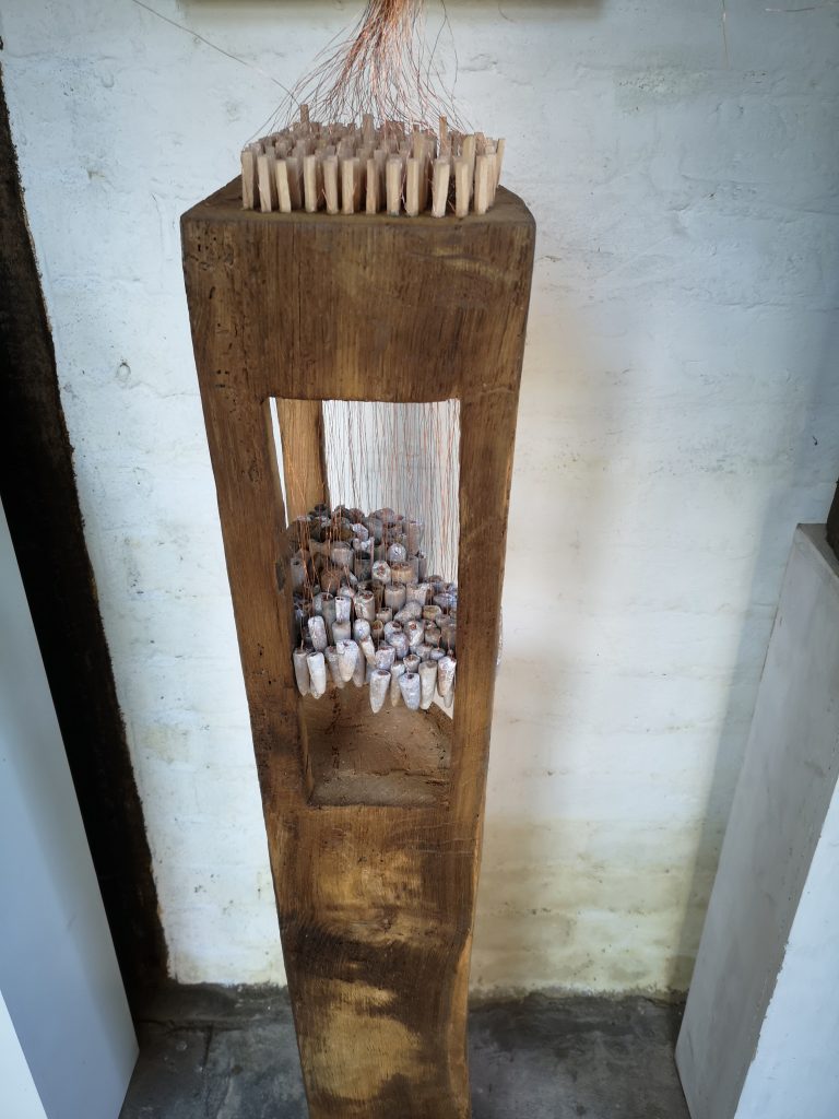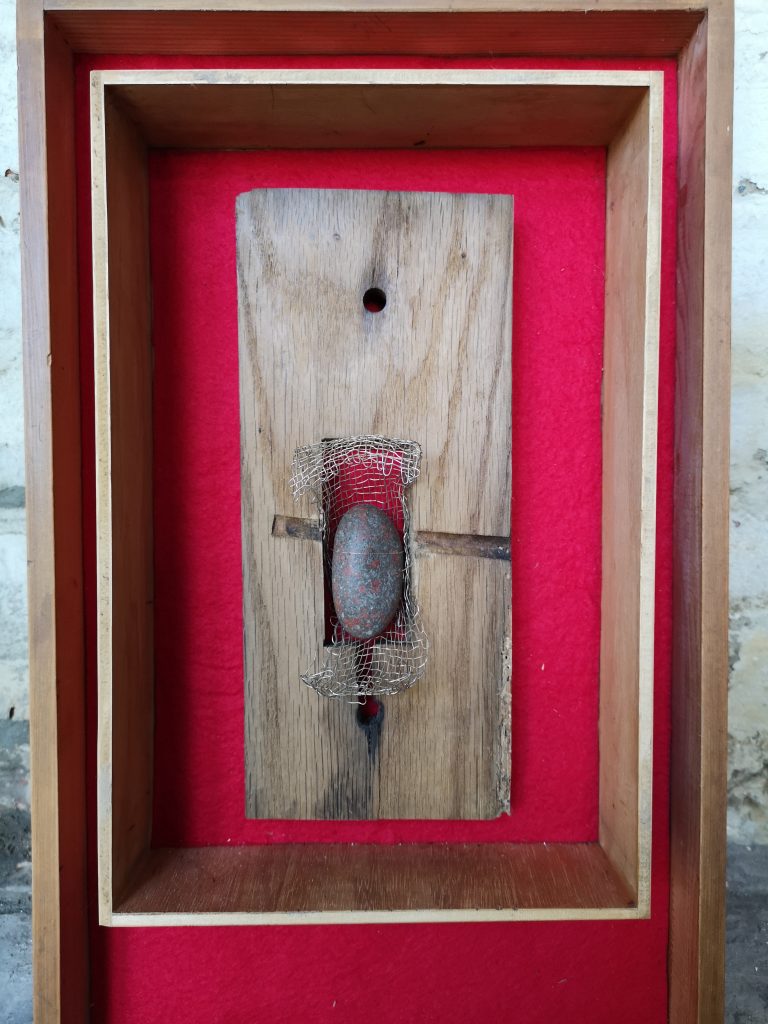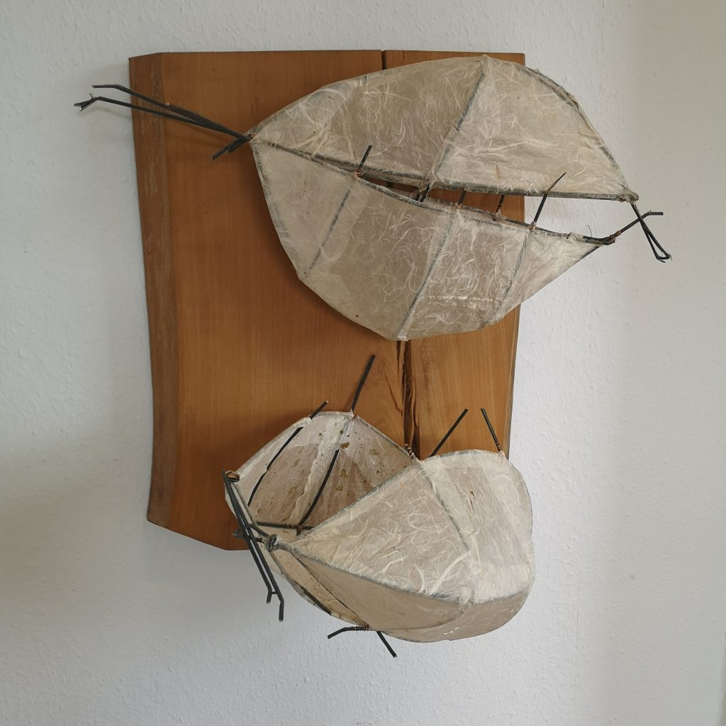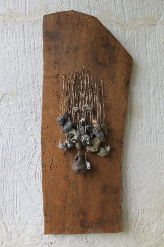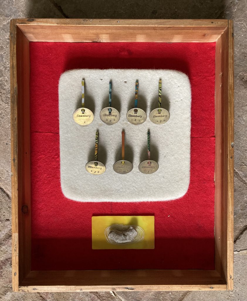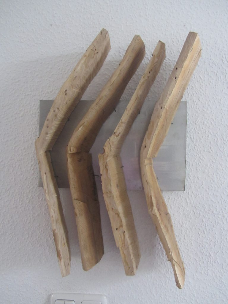 „Baumschnitt 1“ – Obstbaum, Lack„Baumschnitt 2“ – Obstbaum„Baumschnitt 3“ – Obstbaum auf Aluplatte„Diasammlung“ – Dias, Schweißdrahl, Alu auf Eichenbrett„Gurkensalat“ – Filz, Emailletopf„Babe“ – Furnierholz„Steine 1“ – versch. Materialien im Holzkasten„Herrmann Eisenberg“ – versch. Materialien im Holzkasten„Steine 2“ – versch. Materialien im Holzkasten„Koi 4“ – geknüpfte Seide ca. 26×70 cm, 2022geknüpfte Seide ca. 26×26 cm, 2022geknüpfte Seide ca.100×170 cm, 1985geknüpfte Seide ca. 26×26 cm, 2022geknüpfte Seide ca. 26×26 cm, 2022geknüpfte Seide ca. 26×26 cm, 2022„Donnerkeilregen“ – Belemniten, Kupferdraht, Klemmkeile, Eichenbalken„Donnerkeilturm“ – Belemniten„Hornstamm“ – Geweih auf Akazienstamm„Fundturm“ – archäologische Fundstücke, Garn„Kettenkugel“ – 2019 „Zaumzeug“ – Leder auf Eichenbohle, „Skyline“ – Drehbankstähle auf Eichenbohle„Kugelbrett“ – Porzellanmahlkugeln, Lack, Holzbohle„Verbindung“ – Kupfer, Eiche„Knoppfsäule“ – Knöpfe, Schweißdraht, Eiche„“Glasbruch“ – Glas auf Kiefer„Tal der Könige 1“ – versch. Materialien im Holzkasten„Tal der Könige 2“ – versch. Materialien im Holzkasten„Tal der Könige 3“ – Tierschädel, Seide im Holzkasten„Flechtwerk 1“ – Papier auf Buchenbohle„Flechtwerk 2“ – Papier auf Buchenbohle„Hülle 1“ – Seidenpapier, Peddigrohr auf Eichenbohle (3-teilig)„Hülle 2“ – Seidenpapier, Peddigrohr auf Buchenbohle„Wicklung“ – Kupfer auf Eichenbohle„Wollbesen“ – Wolle, Schneebesen auf Eichenbohle„Stahldruck“ – Stahldruckproben auf Eichenbohle„Flucht“ – Schädel, Bleischiffchen„Seeufer“ – Muscheln, Sackleinen, Holzstäbe„Schnittwerk 1“ – Messing, Eiche„Skyline“ – Messing, Eichenbalken„Cornetto“ – Gips, Alu, Wurzelholz auf Eichenplatte„Waldgang“ – Tierschädel, Lack, Filz im Holzkasten„Strein im Kasten“ – Stein, Silberdraht, Eichenbrett, Filz, Holzkasten„hängender Stein“ – Feuersteinknolle im Eichenbalken, 2019„Farbspiel“ – Mosaikkunststoff auf Buchenbohle (6-teilig)„geschlossene Kirche“„Hammerdenkmal“„Drahtfund“ „Glasbruch“ – Glas auf Eichenbohle„Steinseide“ – Seide, Sandstein„Seidenstück“„Steinseide grün und gelb“ – Seide, Sandstein„Macchia“„Autowerkstatt“ – Lochkarten, Kupferdraht, Stahlrahmen„Hühnerstein“ – Lochsteine auf Eichenbohle„Zwiegespräch“ 2023 – Zahnprothesen, Pappmache, Lack`“Zündholz“ – Holz, Lack auf Alublech„Fische“ 2022 – ca. 26×26 cm geknüpfte Seide