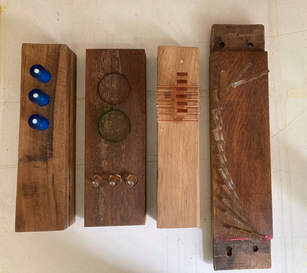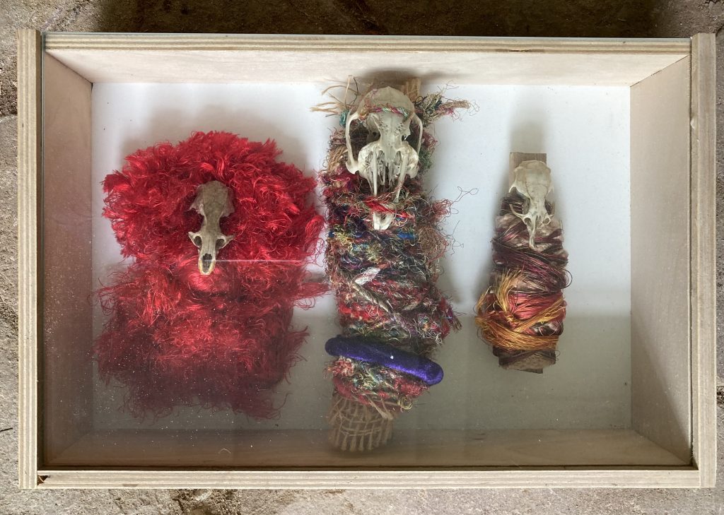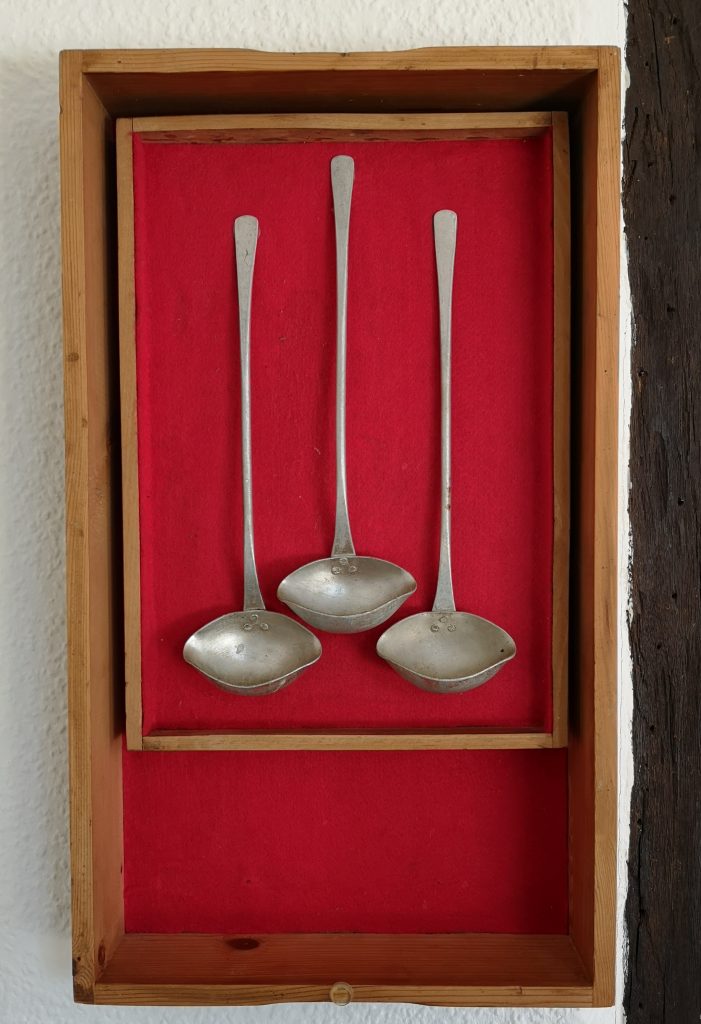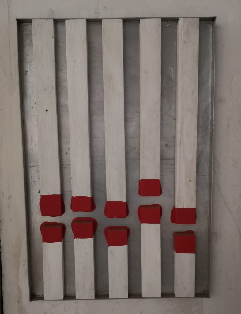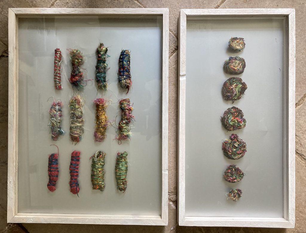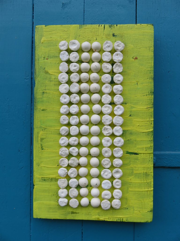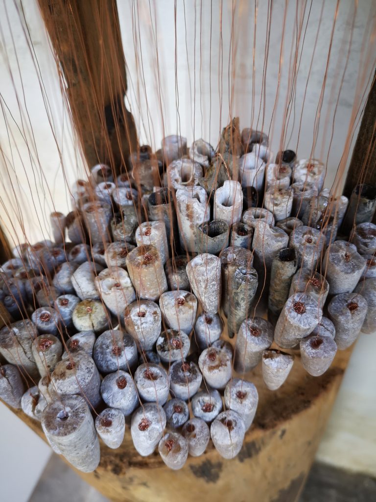 „Baumschnitt 1“ – Obstbaum, Lack„Baumschnitt 2“ – Obstbaum„Baumschnitt 3“ – Obstbaum auf Aluplatte„Diasammlung“ – Dias, Schweißdrahl, Alu auf Eichenbrett„Gurkensalat“ – Filz, Emailletopf„Babe“ – Furnierholz„Steine 1“ – versch. Materialien im Holzkasten„Herrmann Eisenberg“ – versch. Materialien im Holzkasten„Steine 2“ – versch. Materialien im Holzkasten„Koi 4“ – geknüpfte Seide ca. 26×70 cm, 2022geknüpfte Seide ca. 26×26 cm, 2022geknüpfte Seide ca.100×170 cm, 1985geknüpfte Seide ca. 26×26 cm, 2022geknüpfte Seide ca. 26×26 cm, 2022geknüpfte Seide ca. 26×26 cm, 2022„Donnerkeilregen“ – Belemniten, Kupferdraht, Klemmkeile, Eichenbalken„Donnerkeilturm“ – Belemniten„Hornstamm“ – Geweih auf Akazienstamm„Fundturm“ – archäologische Fundstücke, Garn„Kettenkugel“ – 2019 „Zaumzeug“ – Leder auf Eichenbohle, „Skyline“ – Drehbankstähle auf Eichenbohle„Kugelbrett“ – Porzellanmahlkugeln, Lack, Holzbohle„Verbindung“ – Kupfer, Eiche„Knoppfsäule“ – Knöpfe, Schweißdraht, Eiche„“Glasbruch“ – Glas auf Kiefer„Tal der Könige 1“ – versch. Materialien im Holzkasten„Tal der Könige 2“ – versch. Materialien im Holzkasten„Tal der Könige 3“ – Tierschädel, Seide im Holzkasten„Flechtwerk 1“ – Papier auf Buchenbohle„Flechtwerk 2“ – Papier auf Buchenbohle„Hülle 1“ – Seidenpapier, Peddigrohr auf Eichenbohle (3-teilig)„Hülle 2“ – Seidenpapier, Peddigrohr auf Buchenbohle„Wicklung“ – Kupfer auf Eichenbohle„Wollbesen“ – Wolle, Schneebesen auf Eichenbohle„Stahldruck“ – Stahldruckproben auf Eichenbohle„Flucht“ – Schädel, Bleischiffchen„Seeufer“ – Muscheln, Sackleinen, Holzstäbe„Schnittwerk 1“ – Messing, Eiche„Skyline“ – Messing, Eichenbalken„Cornetto“ – Gips, Alu, Wurzelholz auf Eichenplatte„Waldgang“ – Tierschädel, Lack, Filz im Holzkasten„Strein im Kasten“ – Stein, Silberdraht, Eichenbrett, Filz, Holzkasten„hängender Stein“ – Feuersteinknolle im Eichenbalken, 2019„Farbspiel“ – Mosaikkunststoff auf Buchenbohle (6-teilig)„geschlossene Kirche“„Hammerdenkmal“„Drahtfund“ „Glasbruch“ – Glas auf Eichenbohle„Steinseide“ – Seide, Sandstein„Seidenstück“„Steinseide grün und gelb“ – Seide, Sandstein„Macchia“„Autowerkstatt“ – Lochkarten, Kupferdraht, Stahlrahmen„Hühnerstein“ – Lochsteine auf Eichenbohle„Zwiegespräch“ 2023 – Zahnprothesen, Pappmache, Lack`“Zündholz“ – Holz, Lack auf Alublech„Fische“ 2022 – ca. 26×26 cm geknüpfte Seide